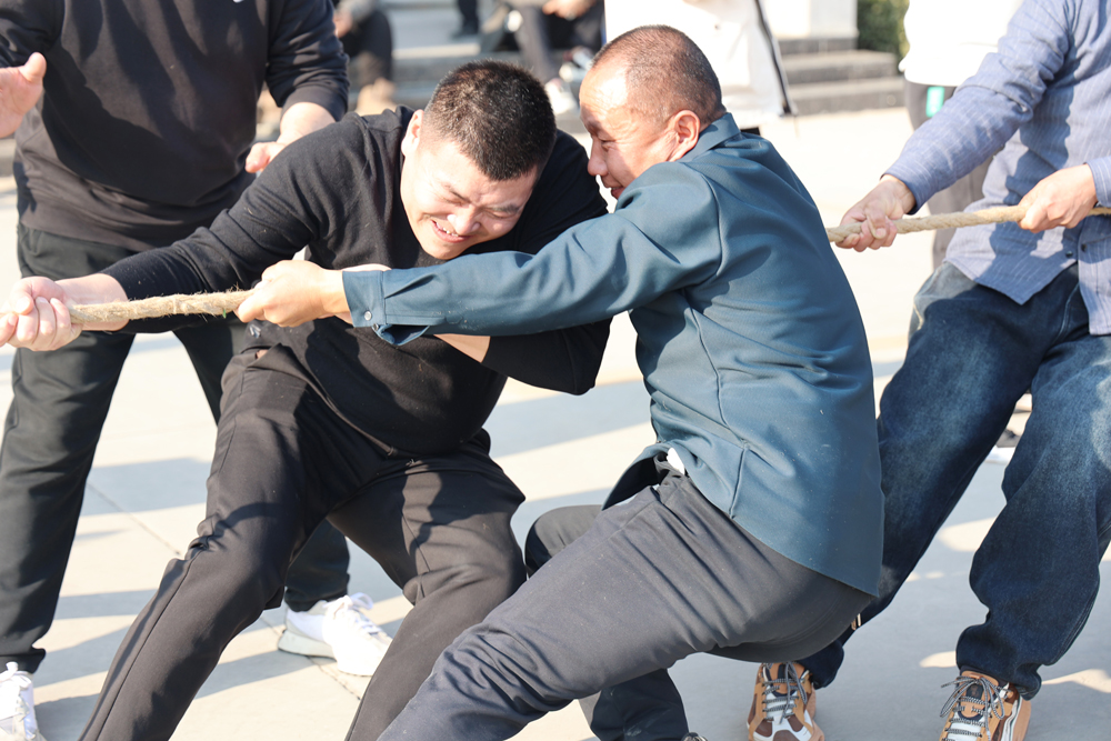 随着裁判的一声哨响,拔河比赛奏响了年会的高潮。绳子两端,是力量与智慧的较量,更是团队协作精神的强力展现。员工们紧握长绳,脚踏实地,每一个坚定的眼神,每一次齐心的呐喊,都是对“众人拾柴火焰高”最生动的诠释。加油声在空气中沸腾,汗水在脸颊上挥洒,震耳欲聋的欢笑声此起彼伏,凝聚成团结的纽带,连接着每一位royal皇家88平台人的心。