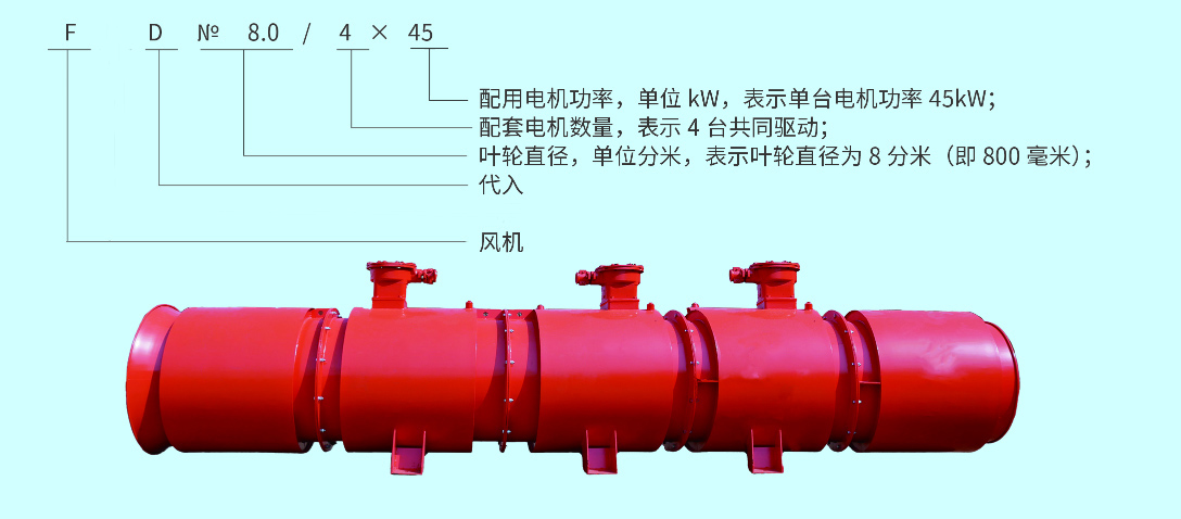 通风型号及含义如下:抽出式轴流局部通风机
